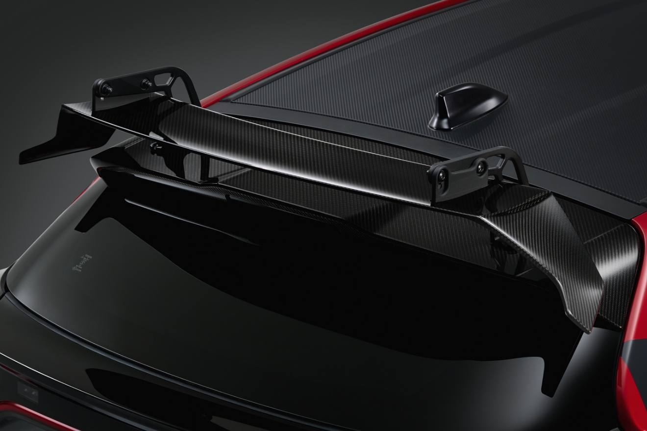 ・A newly developed (CFRP) lightweight rally spoiler for the Ogier Edition and the same (variable-wing, CFRP) rear spoiler as on the GRMN Yaris*2 for the Rovanperä Edition improve aerodynamic characteristics.