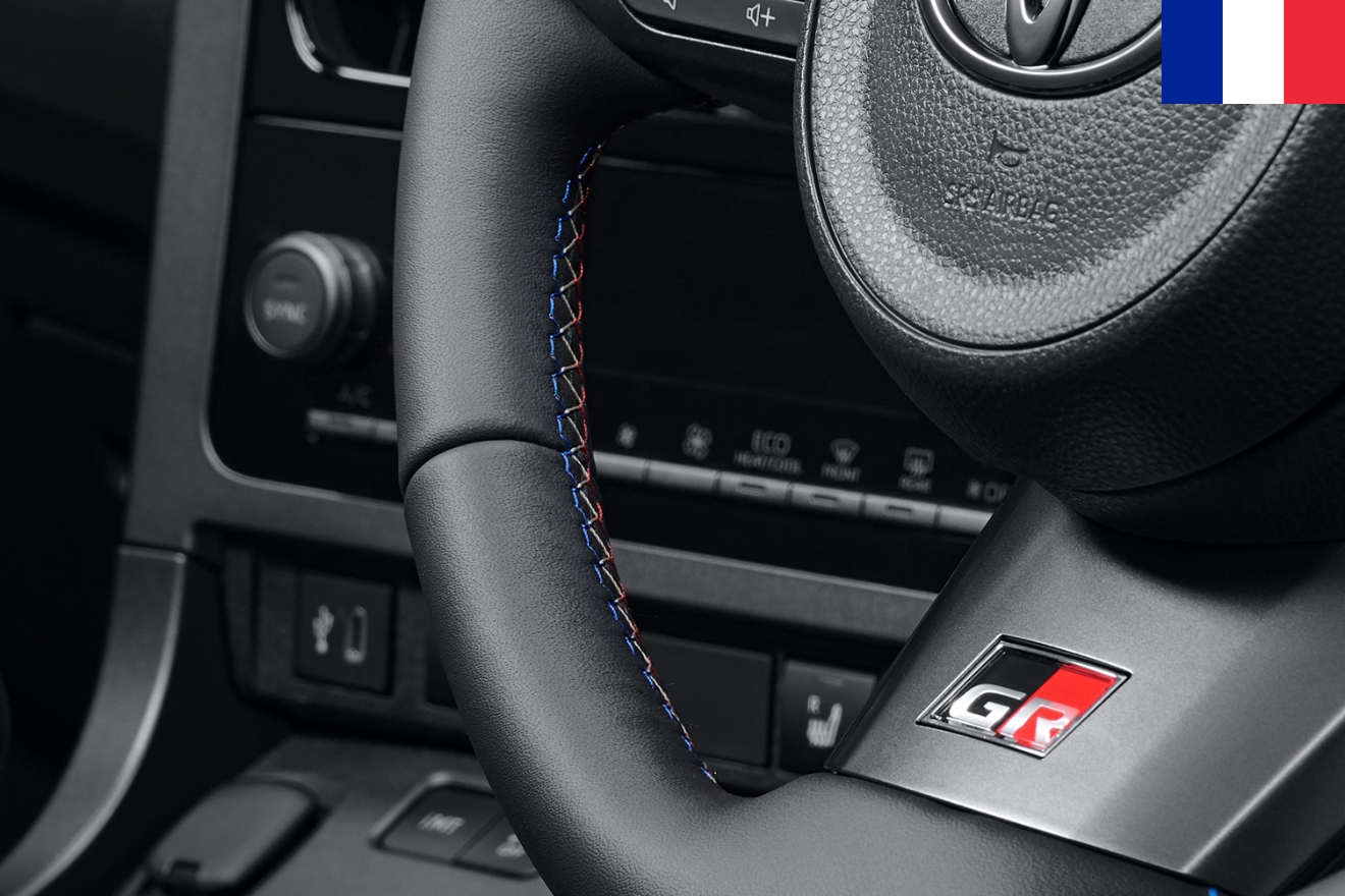 ・The steering wheel stitch color matches the colors of the national flag of each driver’s home country (France for Ogier; Finland for Rovanperä). Also, an exclusive plate commemorating TGR’s winning of the WRC is mounted on the instrument panel in front of the passenger seat.