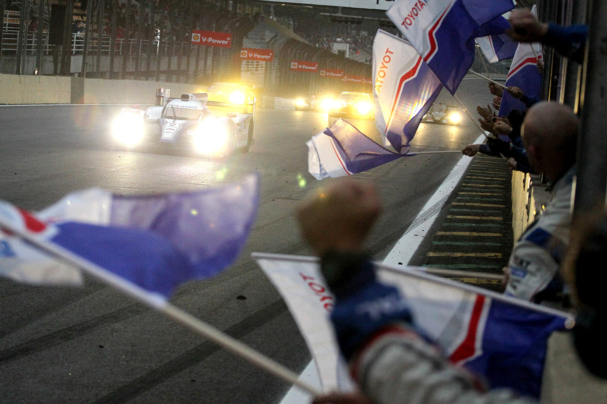 This is the year that TOYOTA returned to WEC with a hybrid car named the TS030 HYBRID, mounting a revolutionary hybrid drive system. In its first entry in the third round of the season, the 24 Hours of Le Mans, TOYOTA entered two cars, No. 7 driven be Alex Wurz, Nicolas Lapierre and Kazuki Nakajima, and No. 8 driven by Stephane Sarrazin, Anthony Davidson and Sébastien Buemi. Despite having run within reach of the lead in the early stages of the race, both cars eventually had collisions with other competitors leading to crashes that forced them to retire from the race. After Round 4 of the series at Silverstone, only car No. 7 (Alex Wurz/Nicolas Lapierre) competed. At Round 5 in Sao Paulo, the TOYOTA car took pole position and went on from there to give the TOYOTA team its first WEC victory in 20 years. In Round 7 at Fuji Speedway, of the Car No. 7 drivers (Alex Wurz/Nicolas Lapierre/Kazuki Nakajima), it was Nakajima who won the team pole position. And after a tough defensive struggle on their home circuit, No. 7 took the win. With this, Nakajima became the first Japanese driver to win a WEC race in 20 years. Then in Round 8 in Shanghai, it was another pole-to-victory triumph for TOYOTA.
