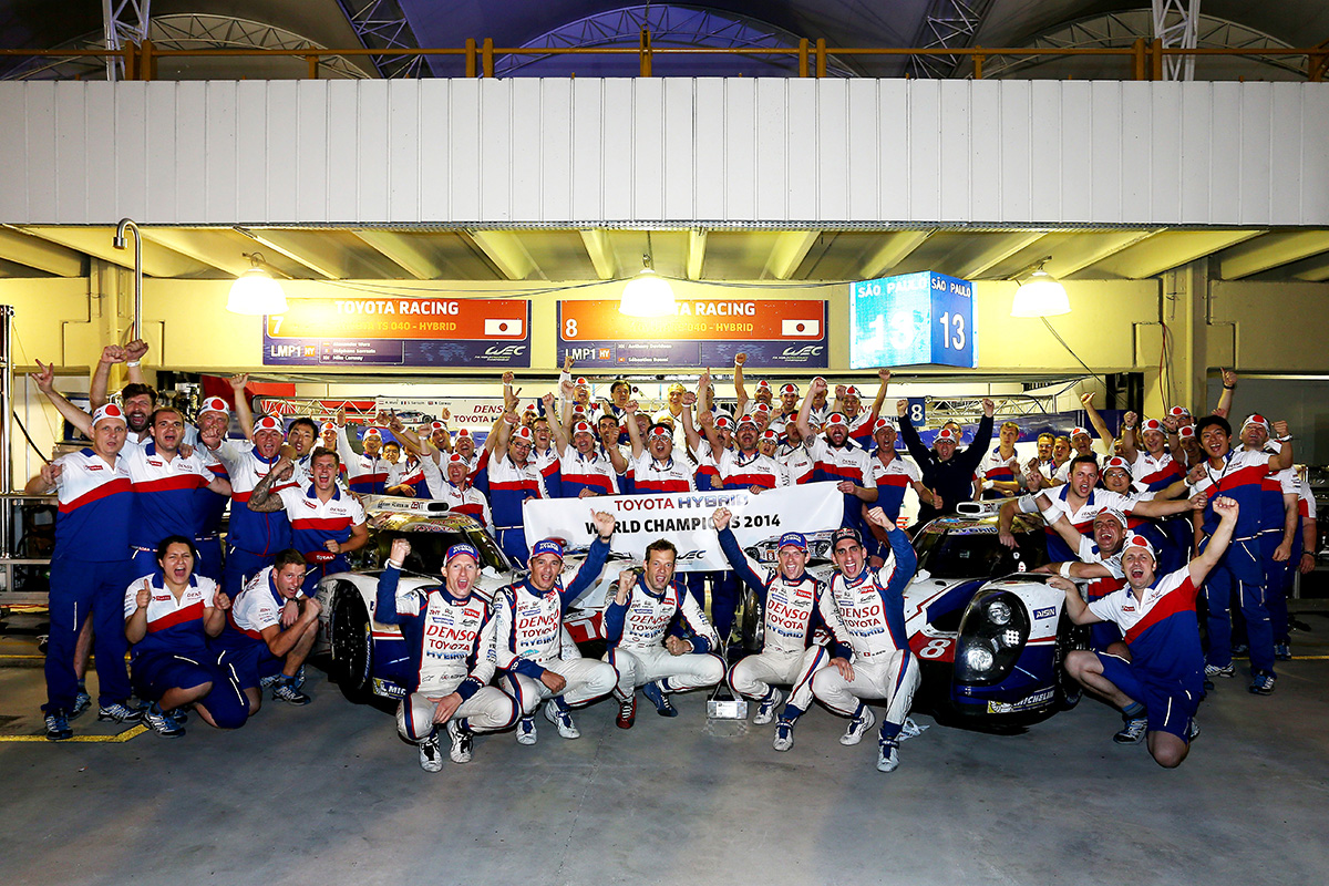 This year, the TOYOTA team competed WEC with two TS040 HYBRID car with engines delivering roughly 1,000 hp. In the opening round of the series at Silverstone, car No. 8 (Anthony Davidson/Nicolas Lapierre/Sébastien Buemi) won the race, while the pole-starting car No. 7 (Alex Wurz/Stephane Sarrazin/Kazuki Nakajima) finished 2nd to give the team a 1-2 sweep. Round 2 was also won by car No. 8. Next, in Round 3, the 24 Hours of Le Mans, Nakajima in car No. 7 became the first Japanese driver to win pole position. Car No. 7 continued to run in the lead for the first 14 hours before finally being forced to retire from the race. Car No. 8 got its second consecutive podium finish at Le Mans by finishing in 3rd place. Then, in round 5 at Fuji, car No. 8 scored a pole-to-goal win for a third consecutive victory at its home race. Car No. 7 also came home in 2nd place to give TOYOTA its second 1-2 finish of the season. At the following Round 6 in Shanghai, car No. 8 and No. 7 scored their second consecutive 1-2 victory in that order. At Round 7 in Bahrain, car No. 7 was the winner. And in the final round in Sao Paulo car No. 8 easily took 2nd place to give TOYOTA the first-ever WEC Manufacturer's title for a Japanese manufacturer. What's more the car No. 8 driver pair of Davidson and Sebastien won the Drivers title.