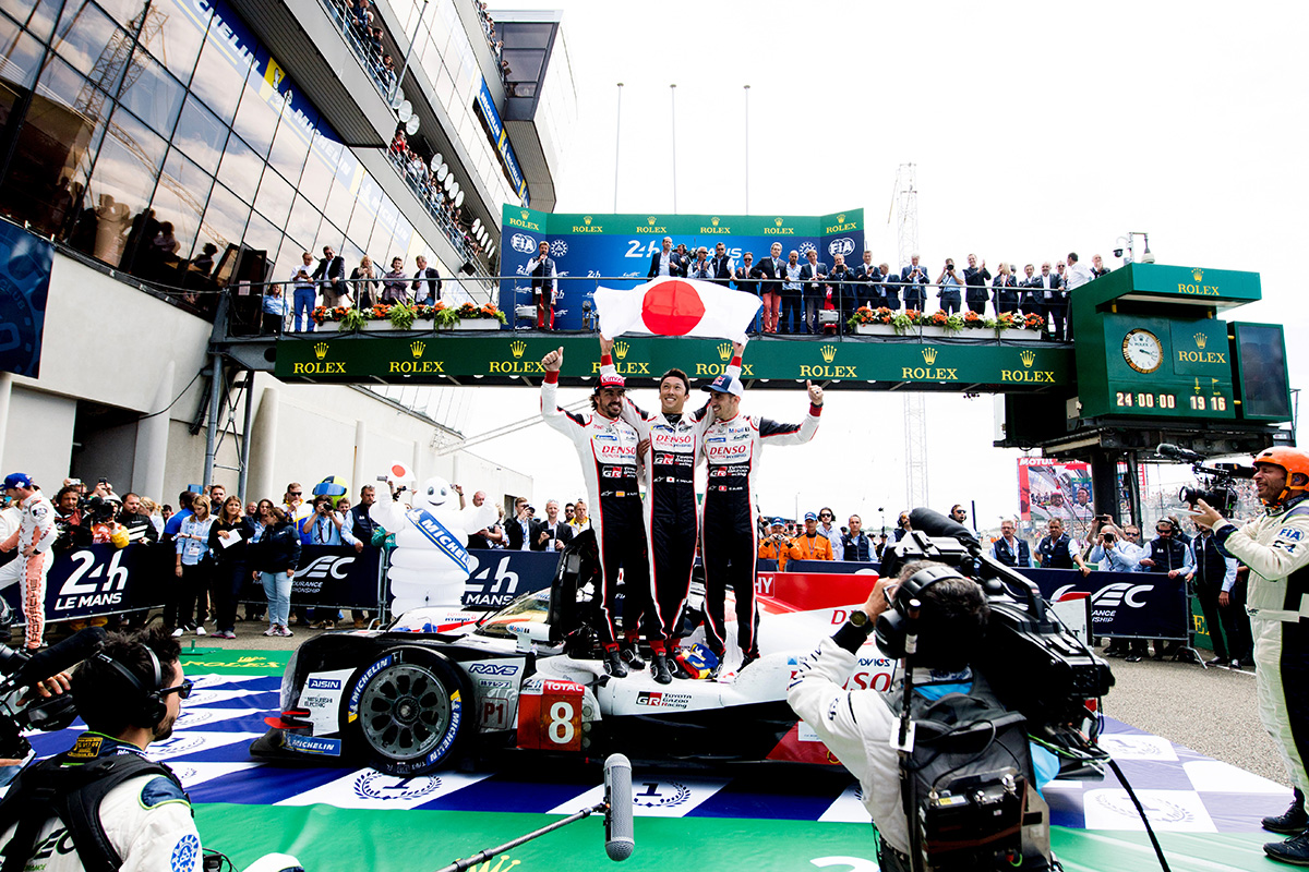 From 2018, the WEC series ran as a Super Season spanning more than a year, starting with the opening round in May at Spa and running until Round 8 at Le Mans in June of 2019. The new, more highly developed TS050 HYBRID now had a driver team of Sébastien Buemi and Kazuki Nakajima plus the former F1 world champion Fernando Alonso for car No. 8. In the series opener, this car No. 8 and car No. 7 (Mike Conway/Kamui Kobayashi/José María López) scored a 1-2 finish. In the following Round 2, the 24 Hours of Le Mans, it was Kazuki Nakajima who won pole position for car No. 8. In the race, the two TS050 HYBRID cars competed for the lead. They went on that way to another 1-2 finish with car No. 7 claiming their first victory at Le Mans. Car No. 7 continued its winning streak in Round 4 at Fuji and Round 5 at Shanghai. Then car No. 8 won in Round 6 at Sebring and Round 7 at Spa, giving the TOYOTA team four straight wins. Then came the final round of the series at Le Mans. The perfect display of speed continued here, with Kamui Kobayashi in car No. 7 winning a third straight pole position for the Toyota team.