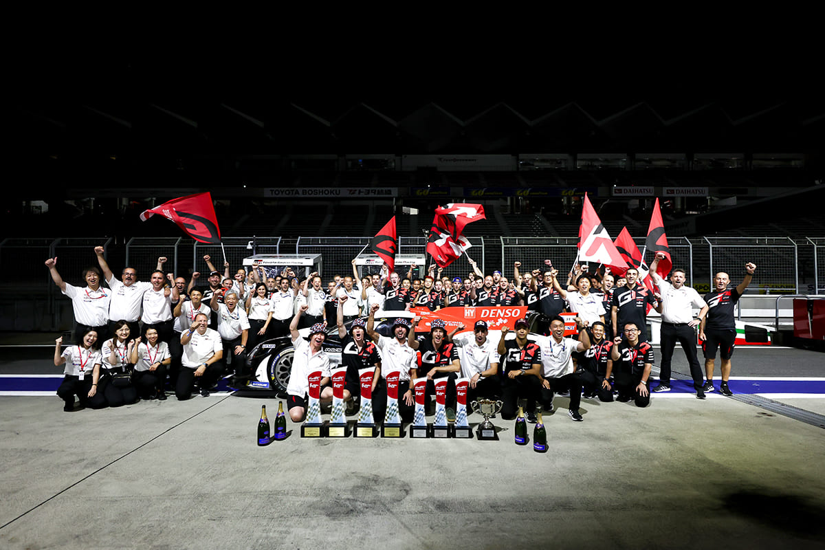Round 6 was held at TGR’s home course, Fuji Speedway. Again, car No. 7 won pole position with a course record* time, while car No. 8 finished in 2nd position to give TGR both spots on the front row of the starting grid. In the race, car No. 7 prevailed in a battle with One Porsche to take the win, while No. 8 finished 2nd in a perfect show of strength. With this, TGR clinched the Manufacturers title without waiting for the final round.