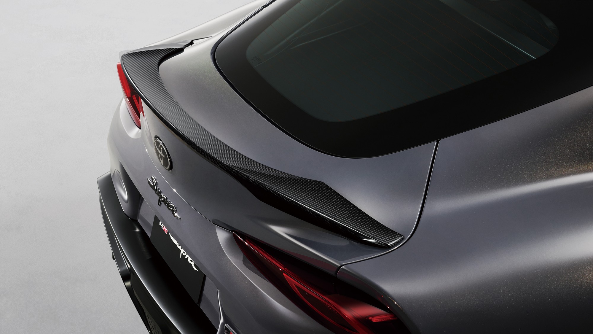 - A carbon-fiber front spoiler, front canards, and front center flap team up with a carbon-fiber swan-neck rear wing reminiscent of that on the GR Supra GT4 to optimize front and rear aerodynamic balance, downforce, and drag, improving road contact and handling performance.