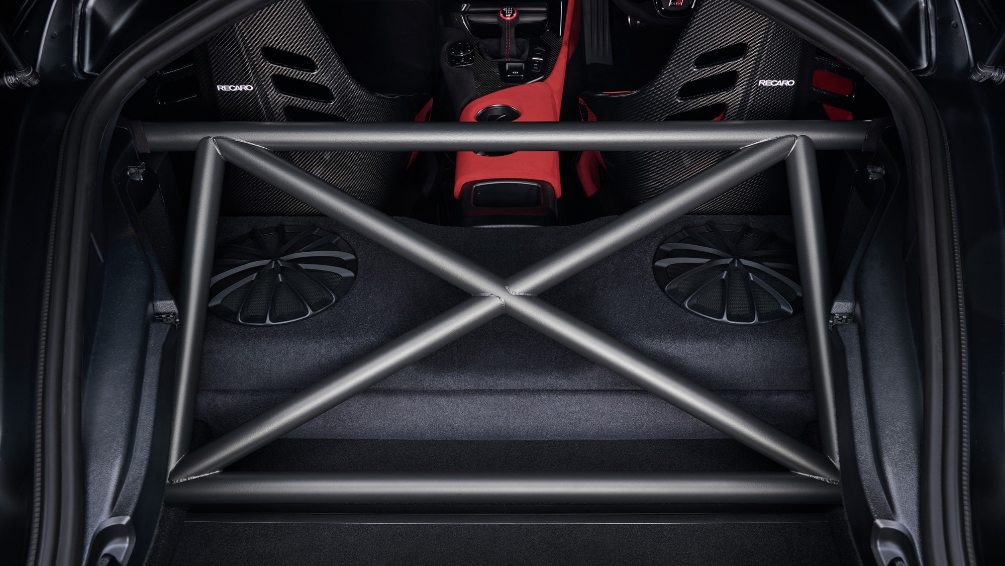 - “RECARO Podium CF” carbon-fiber full-bucket seats with Alcantara®-covered seat pads firmly hold the body to support accurate driving even when the driver is subjected to g-forces that can increase due to improved driving performance. Also, the driver’s seat has been done in red to accentuate the driver-oriented design of the cockpit.