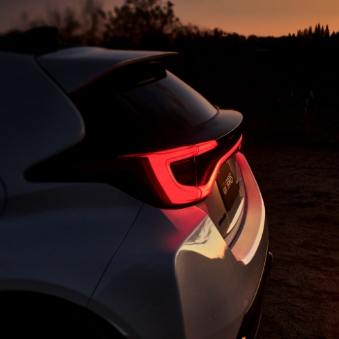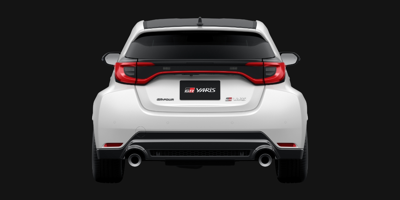 - ・ The upper and lower rear lamps have been consolidated to avoid damage and improve visibility while competing in motorsports. Also, the high-mount stop lamp has been separated from the rear spoiler, increasing the spoiler’s customizability. Additionally, the continuous tail lamps provide a sense of unity and express the individuality that makes the GR Yaris instantly recognizable.