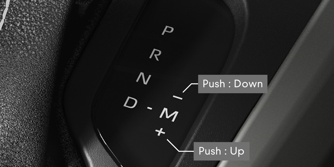 - ・ Applying learnings from motorsports, the direction of shift-lever manual-mode gear shifting has been reversed. Upshifting (acceleration) has been changed to pulling the shift lever, and downshifting (deceleration) has been changed to pushing the shift lever in line with vehicle behavior, realizing operability similar to that of a race car’s sequential transmission.