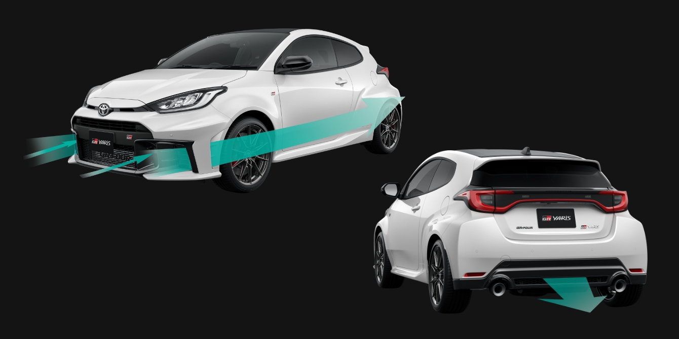 - ・ Because the higher engine output and the availability of the GAZOO Racing Direct Automatic Transmission require improved cooling performance, an automatic transmission fluid cooler comes standard on vehicles equipped with the newly developed automatic transmission. Furthermore, a sub-radiator, cool air intake, and intercooler sprayer are newly available as factory-installed options in the form of a “Cooling Package” that takes competing in motorsports into consideration.
