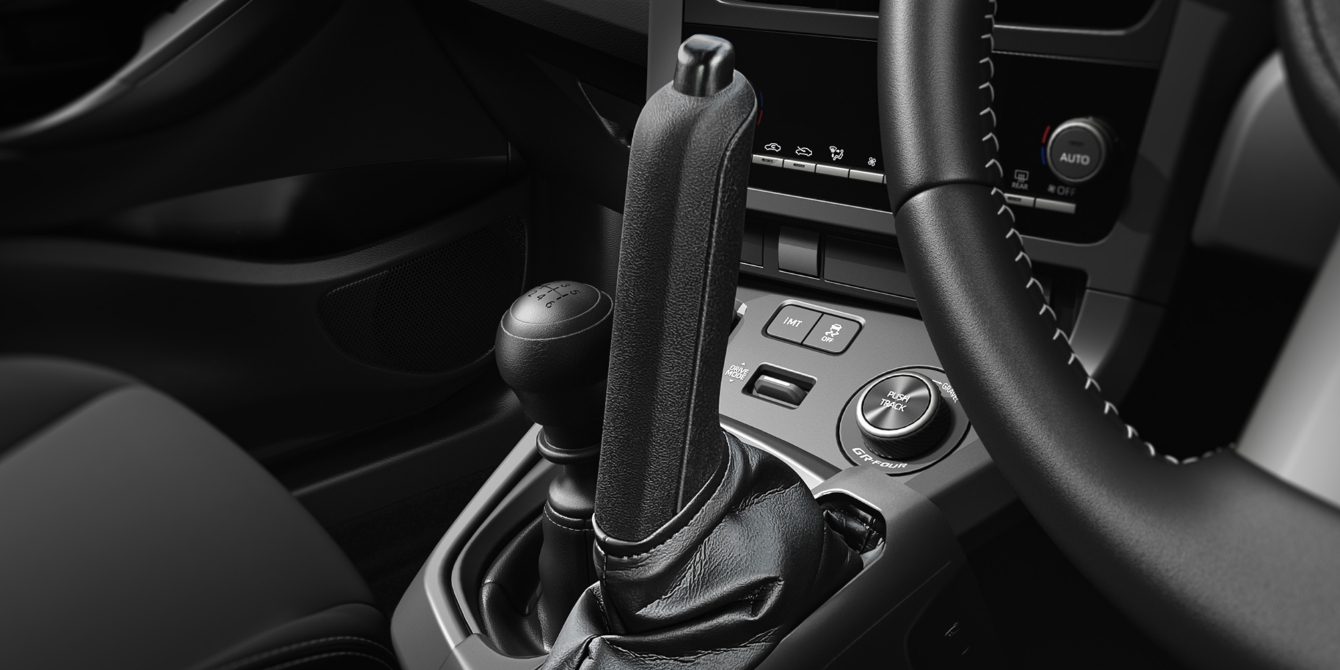 - ・ Applying learnings from competing in the Japan Rally Championship, a change in the positioning of the parking brake is available as a factory-installed option for the competition-oriented RC trim level. By moving the brake lever toward the front of the vehicle compared to the standard position, the distance between the lever and the steering wheel is closer, enabling quicker operation. Also, by increasing the vertical angle, the lever is easier to pull, reducing operational burden.