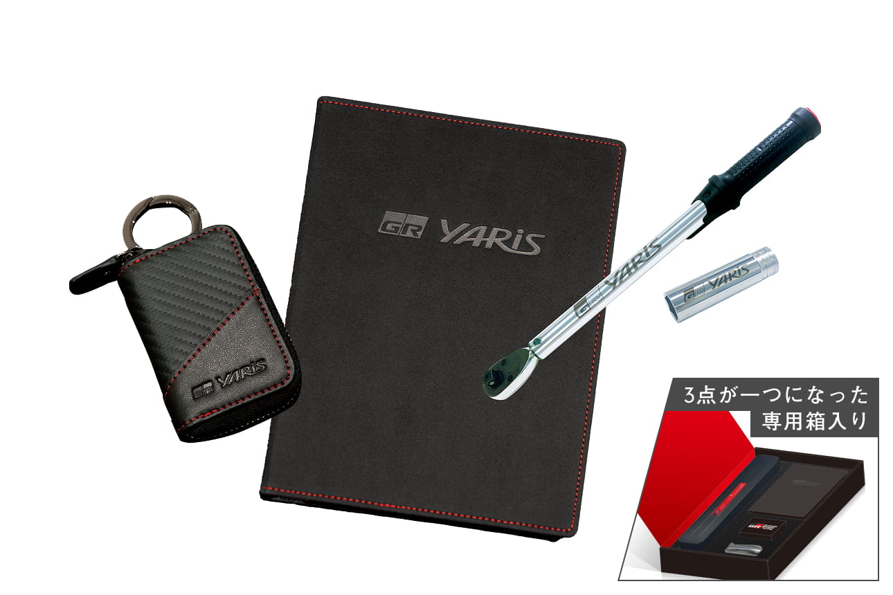 GRヤリスロゴ入り スマートキーケース[カーボン調] / GRヤリスロゴ入り 車検証ケース[スエード] / 専用箱入り GRヤリスロゴ入りトルクレンチ