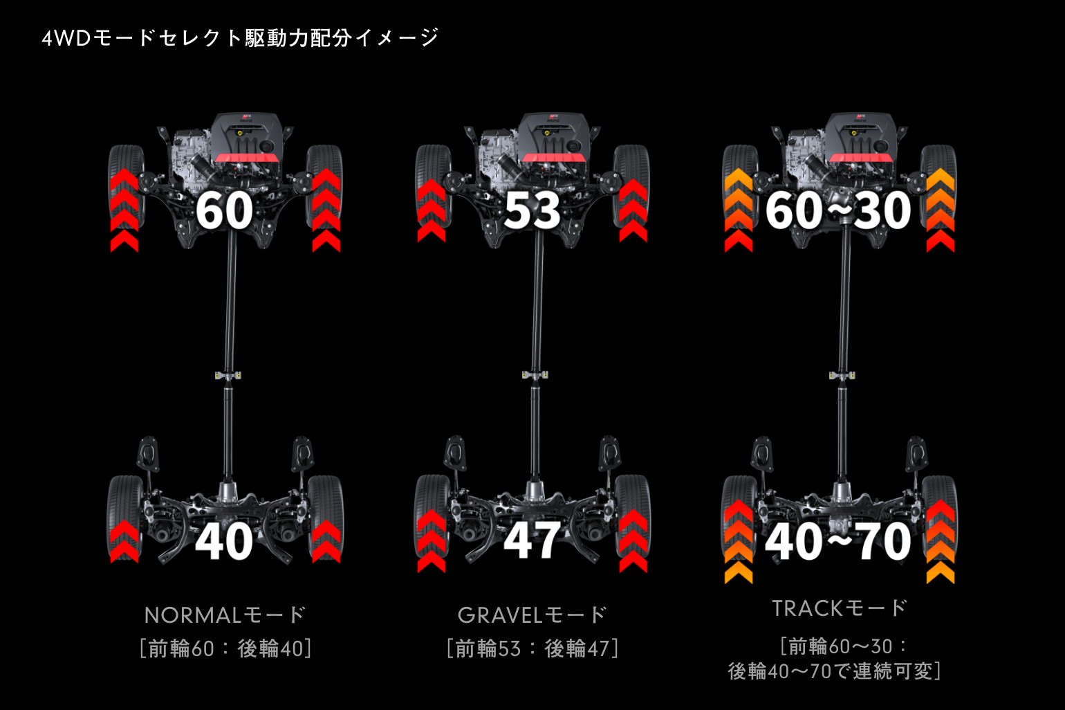 - ※GR COROLLAはGRAVELモード[前輪50:後輪50]となります。