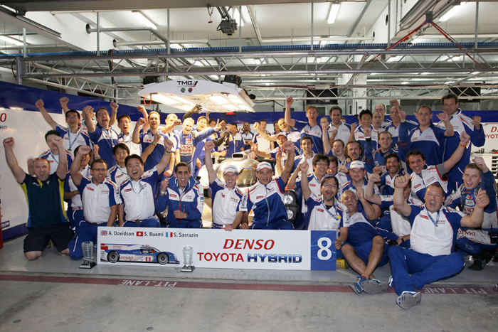 At the race, the TS030 HYBRID, which had shown outstanding speed in 2012, underwent a complete transformation so that in the 2013 race its advantage lay in high fuel efficiency. The six drivers of TOYOTA Racing steadily built up laps against their competitors, who suffered a series of technical failures, but finally fell short of winning the race. Car No.8 finished on the podium in runner up, and car No.7 won 4th place.